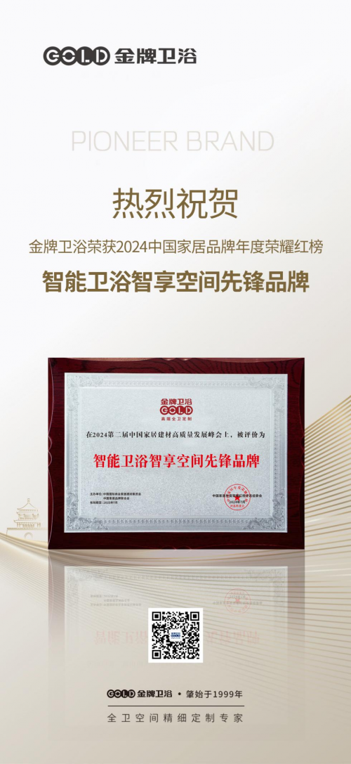 ?7月3日,第二屆中國家居建材高質(zhì)量發(fā)展峰會在佛山圓滿舉辦,金牌衛(wèi)浴作為民族衛(wèi)浴的知名品牌受邀出席本次峰會,并憑借品牌在高端定制與智能制造領(lǐng)域的強大影響力,榮登2024中國家居品牌年度榮耀紅榜,一舉斬獲“智能衛(wèi)浴智享空間先鋒品牌”。